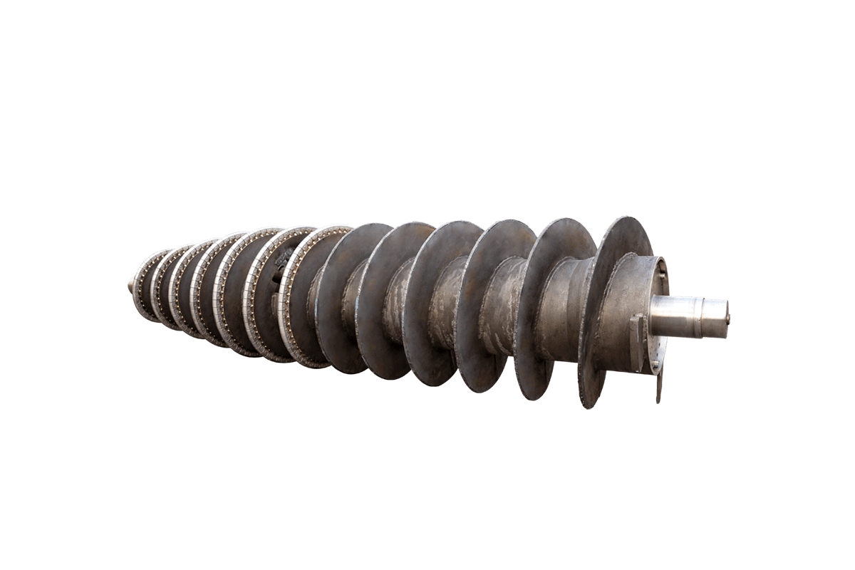 BD 板技術的螺旋輸送器是目前針對活性污泥降低含水率、提高固體回收率最先進的技術之一。它能提高離心機處理能力、降低沉渣含水率、提高固體回收率、清液更清。相較于普通離心機,它的工作轉速更低,電能消耗更少,同時還可以節省藥劑消耗和降低設備運行費用。